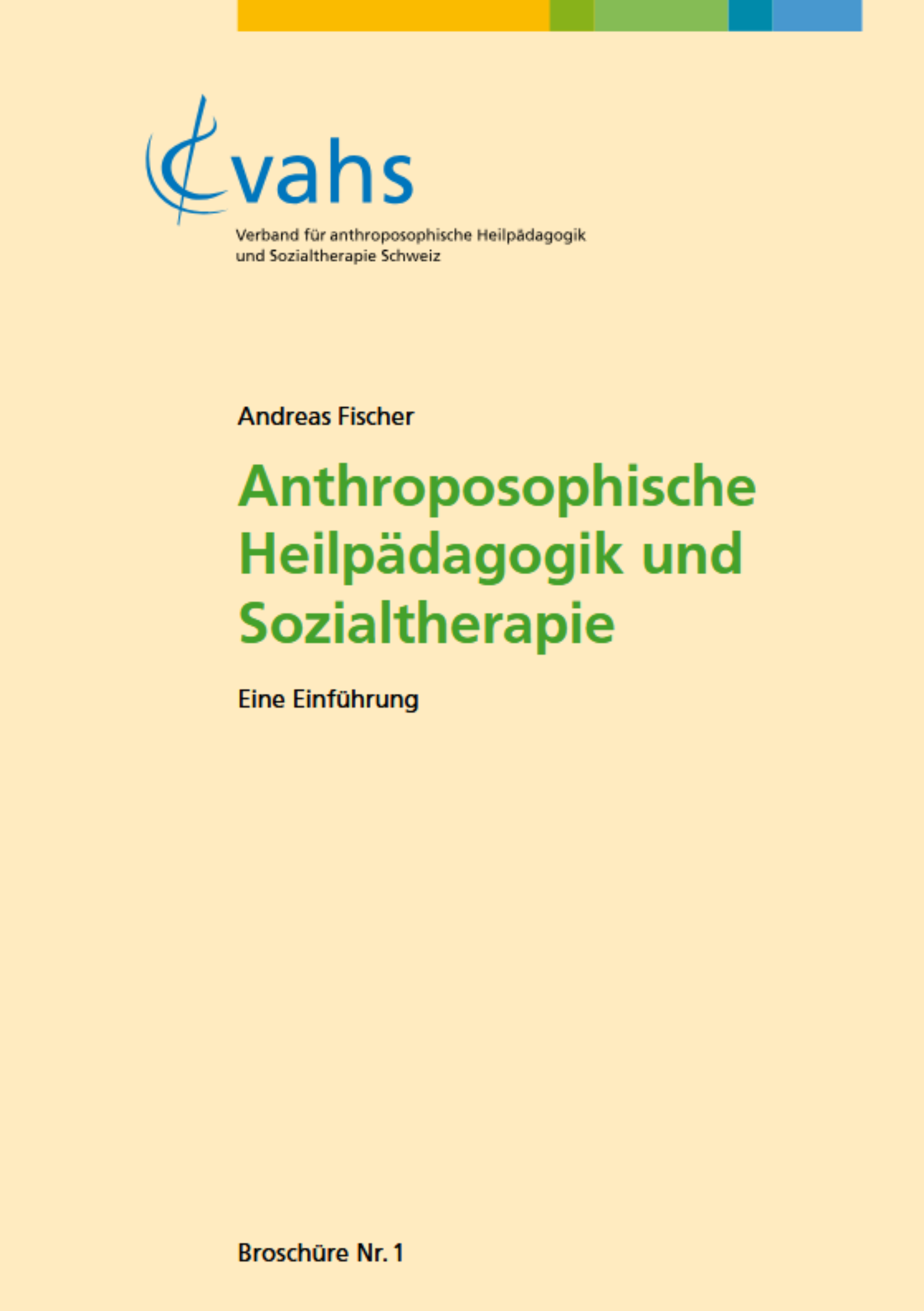 Since 2018, the Swiss association Anthrosocial (formerly vahs) has been publishing a series of brochures with introductory texts on topics related to anthroposophical curative education, social therapy and social psychiatry. They are aimed at staff in institutions, trainees, parents and relatives, people interested in studying and training, participants in further education and conferences, and other interested parties. Their aim is to provide knowledge, experience and information on the basics of anthroposophical social therapy, curative education and social psychiatry and their many fields of activity in an accessible form.