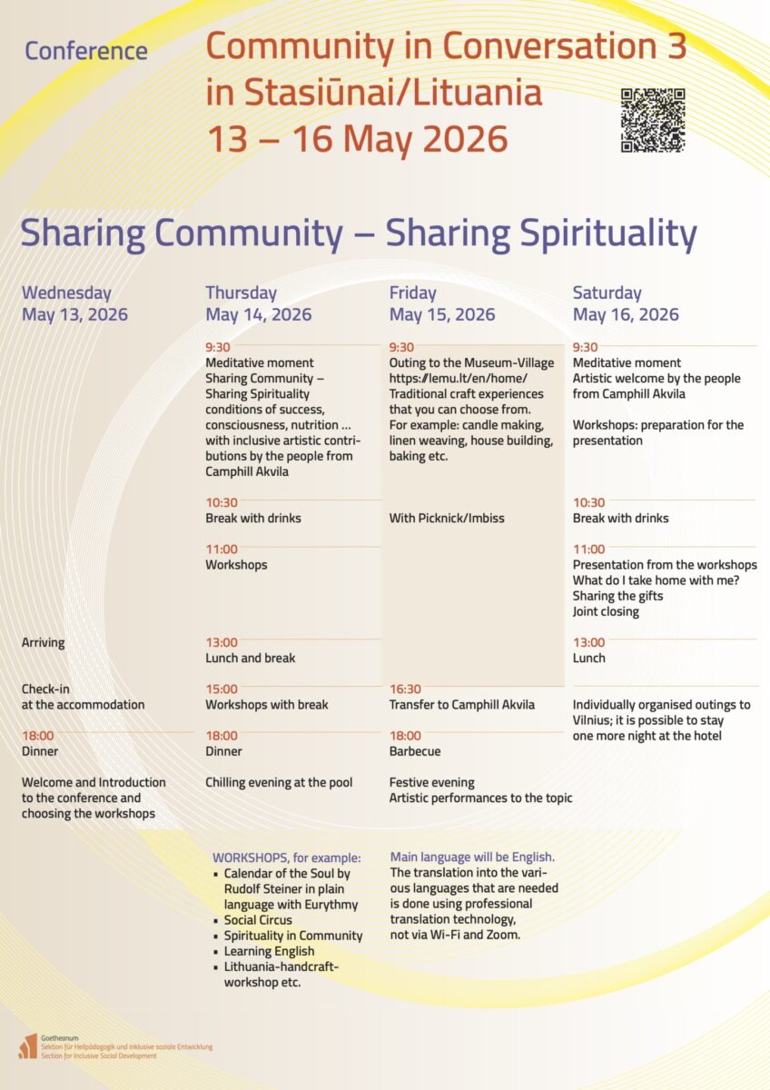The conference is being held in cooperation with our partner organization Camphill Akvila in Lithuania.