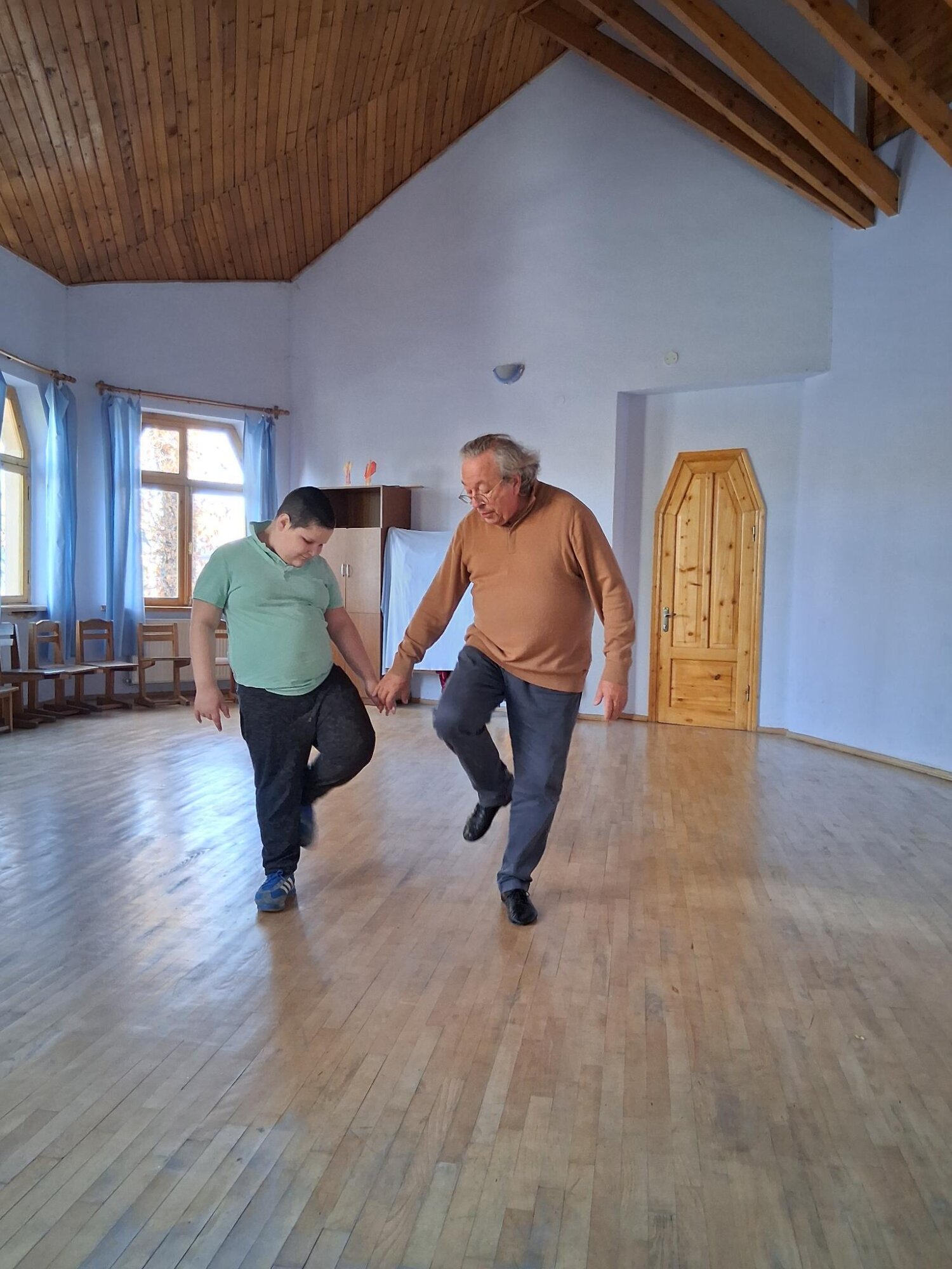 Once they had become familiar with us, they all enjoyed coming, some even several times a day. Our task was to observe each individual child and young person without prejudice, so that we could then suggest appropriate eurythmy exercises and habitual patterns. Often, the aim was to soften tics and compulsions and to support a sense of well-being in their own bodies. We proved to be a good team: Markus as a eurythmy therapist and Janette as a minute-taker and special education consultant. Every day, we worked with eight to ten students and gave regular feedback to the teachers. In the conferences on Thursdays, we looked at these children together with the teaching staff. It was a fruitful and stimulating exchange for everyone. At times, there were also discussions with the parents of individual children. Around mid-November, we completed our work with the first group of children and now concentrated on other, mainly younger students, again eight to ten, spread throughout the day.